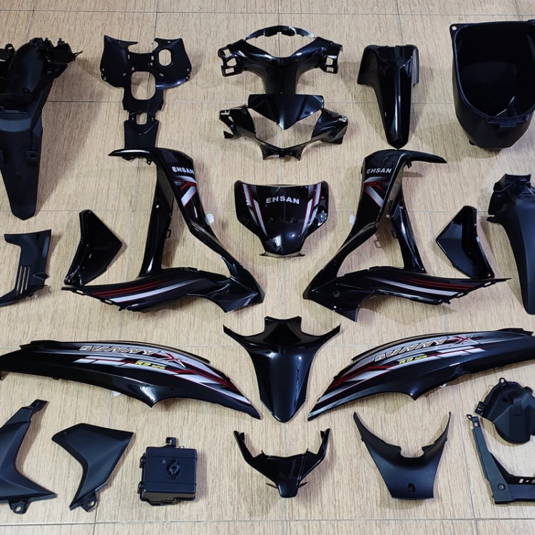فلاپ کامل اصلی خود شرکت احسان پرواز فابریک فول پَک ( کامل ترین فلاپ ایران ) _صفر تا صد تمام فلاپ ها با گلگیر جلو و گلگیر عقب به جز چراغ جلو و عقب و راهنما ها ( فلاپ چراغ جلو + فلاپ کیلومتر + دودی بالا چراغ+ رو بوقی+ بادگیر ها جفت + لچکی داخلش مثلثی ها جفت + گیتاری عقب جفت + پالونی وسط+ قاب سوییچ+ گلگیر جلو+ گلگیر عقب+ پیچ و خار کامل فلاپ ها) پنج رنگ موجود میباشد 1-آبی مشکی 2-قرمز مشکی 3- نقره ای مشکی 4-سفید مشکی 5-مشکی کامل لطفاً بعد از خرید رنگ مورد نظر خود را اعلام بفرمایید