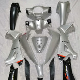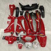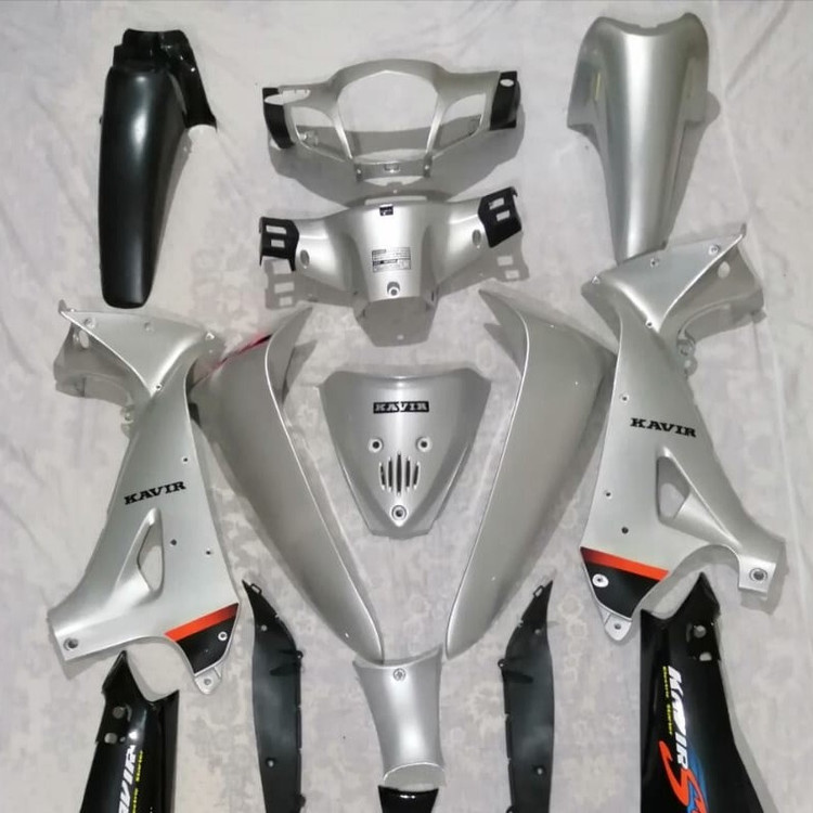 فلاپ کامل اصلی خود شرکت کویر رادیسون فابریک پنج رنگ موجوده: آبی و قرمز و مشکی و سفید و نقره ای شامل : کلیه فلاپ ها برچسب خورده فابریک کویر گلگیر عقب که پلاک بسته میشه چراغ جلو کامل خطر عقب کامل راهنما جلو یک جفت شیشه کیلومتر کلید جات (۵عدد ) باکس باتری زیر زین پیچ و خار کامل فلاپ ها یک بسته